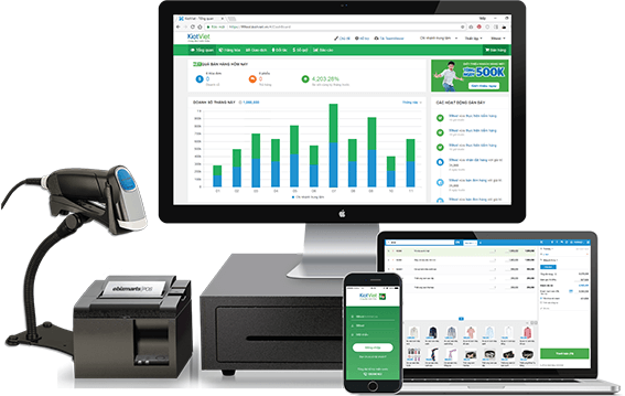 Phần mềm KiotViet TÍCH HỢP VỚI HẦU HẾT CÁC THIẾT BỊ phần cứng như máy tính, máy đọc mã vạch, máy in hóa đơn,… Bạn có thể tận dụng các thiết bị phần cứng sẵn có tại cửa hàng để tiết kiệm chi phí.